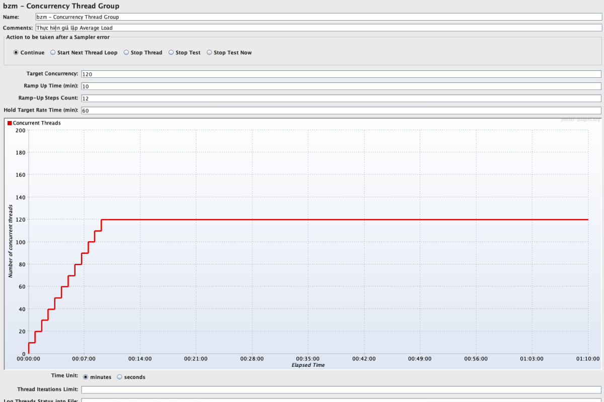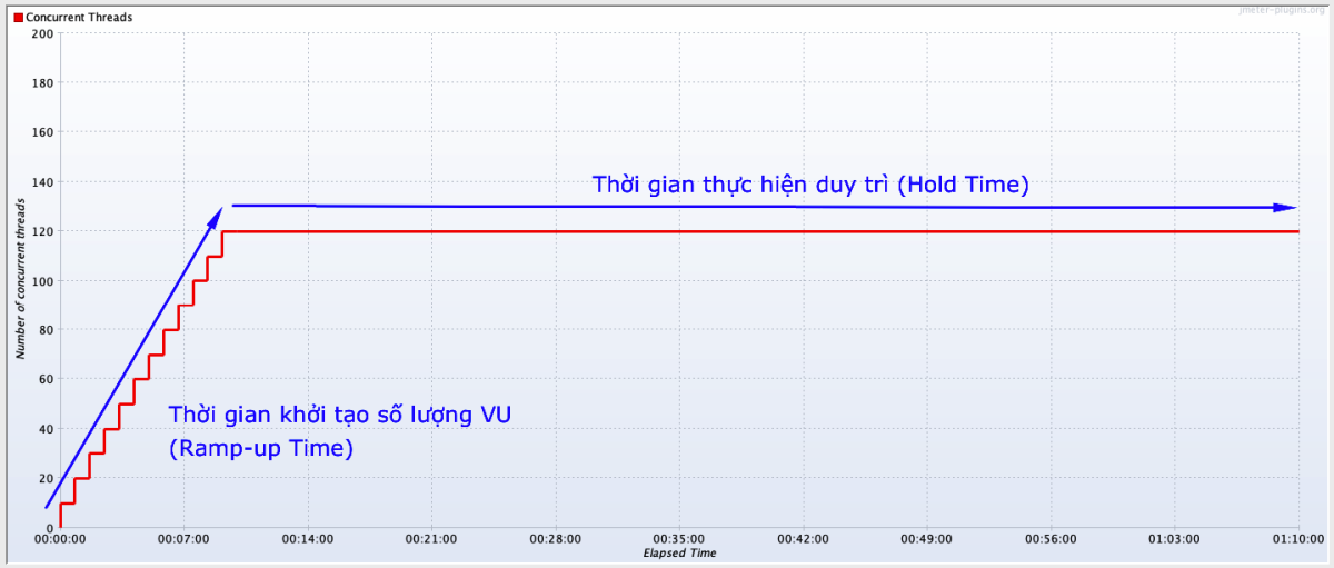 - Ví dụ: Test 01h → Ramp-up: tối đa 20 phút, Hold time: 40 phút (Nếu hạ tầng test mạnh, bạn có thể rút ngắn ramp-up để tập trung phân tích giai đoạn ổn định).