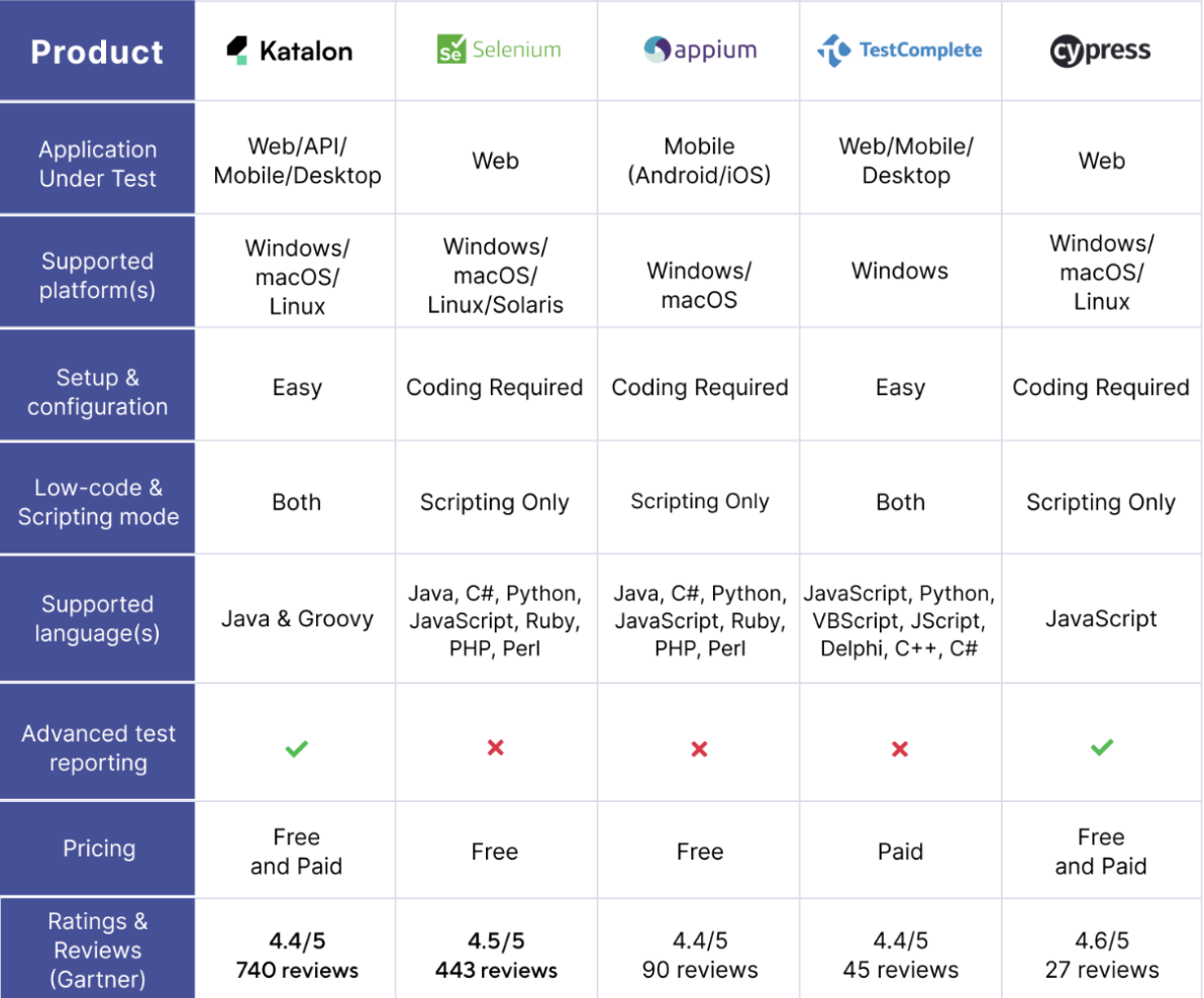 - Chi tiết tham khảo tại link: https://katalon.com/resources-center/blog/automation-testing-tools