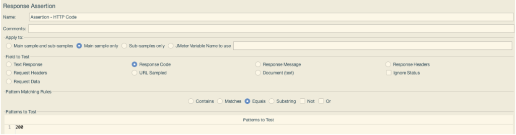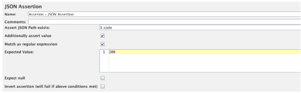 - Invert assertion (will fail if above conditions met): Tick nếu muốn đảo ngược/kiểm tra thông tin không thỏa mãn điều kiện