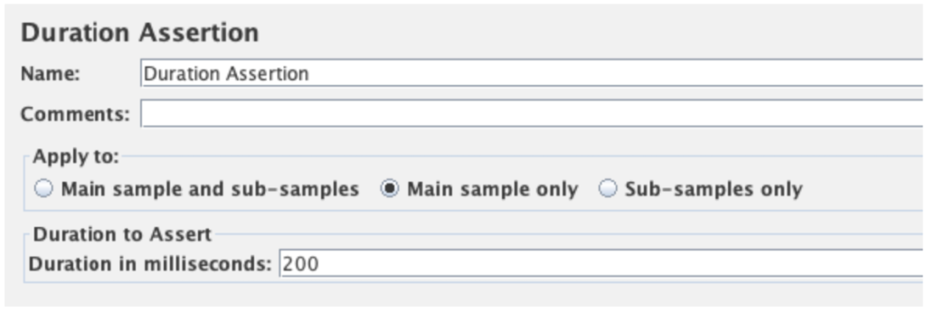 - Duration Assertion được sử dụng để kiểm tra thời gian mà một yêu cầu hoặc một nhóm yêu cầu mất để hoàn thành trong một giao diện người dùng. Nó cho phép bạn đặt ra các điều kiện về thời gian mà yêu cầu hoặc hành động cần phải hoàn thành .