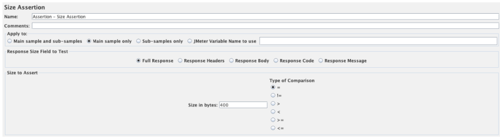 - Size Assertion được sử dụng để kiểm tra kích thước (dung lượng) của phản hồi trả về từ máy chủ trong quá trình thực hiện các yêu cầu trong kịch bản kiểm tra.