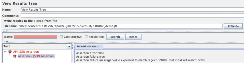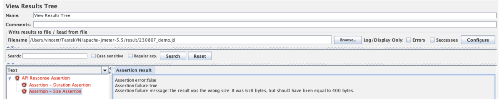 Khi bạn chạy kịch bản thử nghiệm, JMeter sẽ thực hiện các kiểm tra theo Assertion và báo cáo kết quả kiểm tra. Nếu Assertion không được đáp ứng, JMeter sẽ hiển thị lỗi và bạn có thể kiểm tra và sửa lại ứng dụng của mình để đảm bảo rằng nó hoạt động đúng.