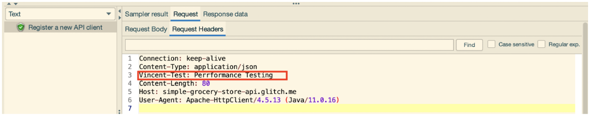 Ví dụ, chúng ta thêm header [Vincent-Test] với value: Performance Testing
