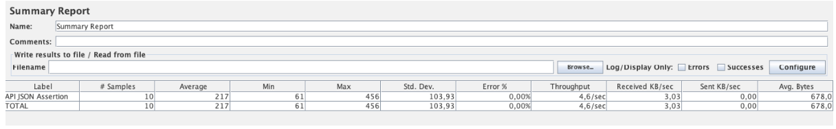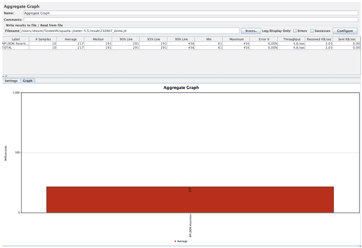 - Hiển thị các thông số tổng hợp như thời gian trung bình, thời gian tối đa, thời gian tối thiểu, số yêu cầu thành công, và tỷ lệ thành công/tổng số.