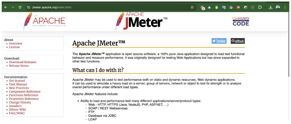 - Mở trang web bạn muốn ghi lại (Ở đây tôi sẽ record trong jmeter.apache.org)