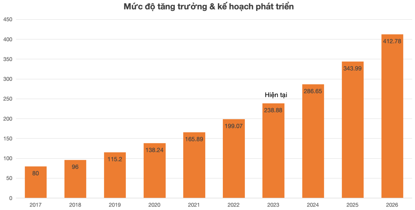 Ví dụ: Nếu hệ thống hiện tại phục vụ tối đa ~239 VUs, và tốc độ tăng trưởng là 20%/năm, ta có thể tính các mức tải kiểm thử như: