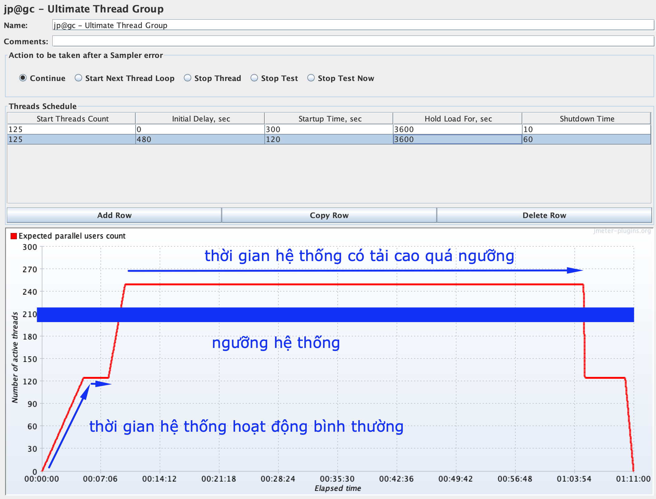 - Ví dụ: Test 01h → Ramp-up: tối đa 20 phút, Hold time: 40 phút (Nếu hạ tầng test mạnh, bạn có thể rút ngắn ramp-up để tập trung phân tích giai đoạn ổn định).